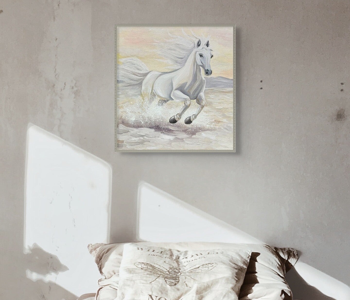 “The White Horse of Peace” is more than just a painting; it’s a statement. The horse’s movement through water represents fluidity and resilience, qualities essential for navigating life’s challenges. The choice of a white horse is deliberate—white symbolizes peace and new beginnings, a universal symbol of hope.